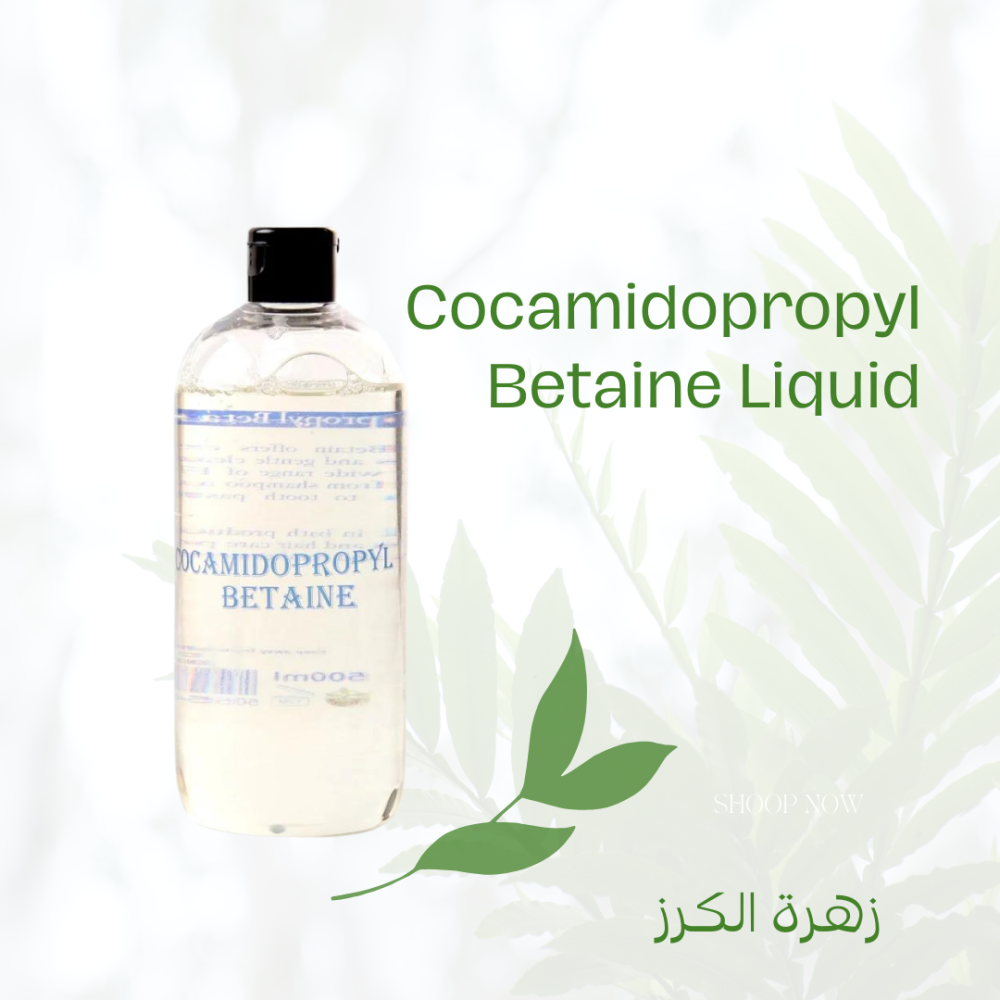 الوصف: المركب الكيميائي العضوي Cocamidopropyl Betaine هو خافض للتوتر السطحي مذبذب خفيف يوفر قدرات رغوة ممتازة، هذا السائل الأصفر الشاحب الزلق والرقيق والواضح هو واحد من أكثر المواد الخافضة للتوتر السطحي شعبية المستخدمة في منتجات اليوم. قابل للتحلل الحيوي بالكامل، وله رائحة قليلة جدا ويعمل كمثخن ثانوي في منتجات تنظيف العناية الشخصية مثل الشامبو وغسول الجسم.