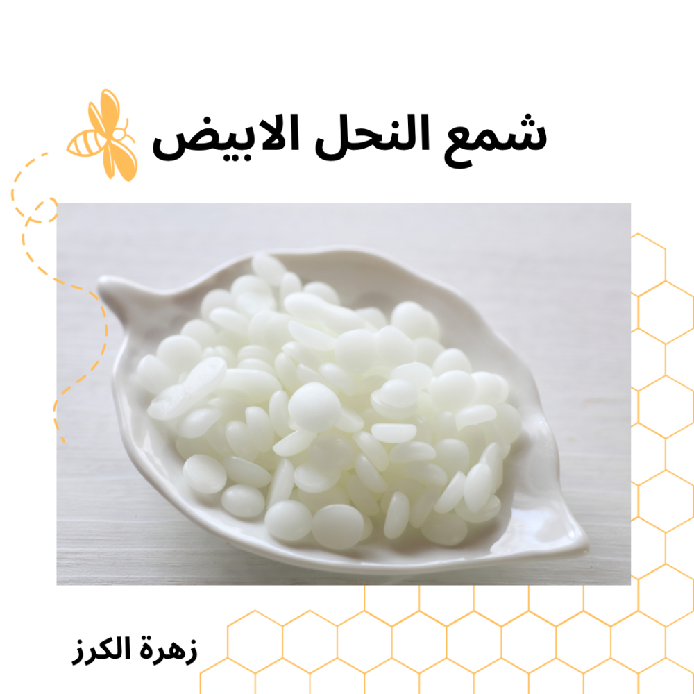 الاستخدام: يستخدم شمع النحل الأبيض في مجموعة متنوعة من منتجات العناية بالبشرة والجمال. يمكن اذابته وإضافته إلى البلسم واللوشن والكريمات ومنتجات العناية بالشفاه وغيرها من التركيبات.